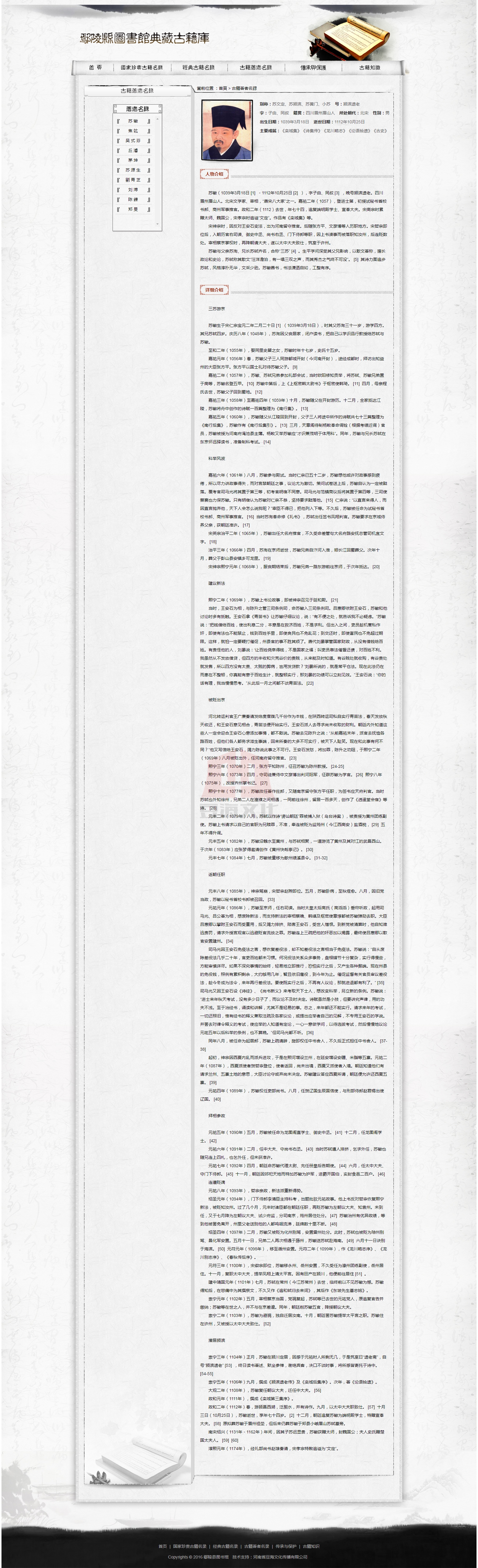 古籍文献数据库拟包含六大栏目:县馆传承与发展、国家级珍贵古籍、省级珍贵古籍、经典古籍、古籍作者库、古籍知识。